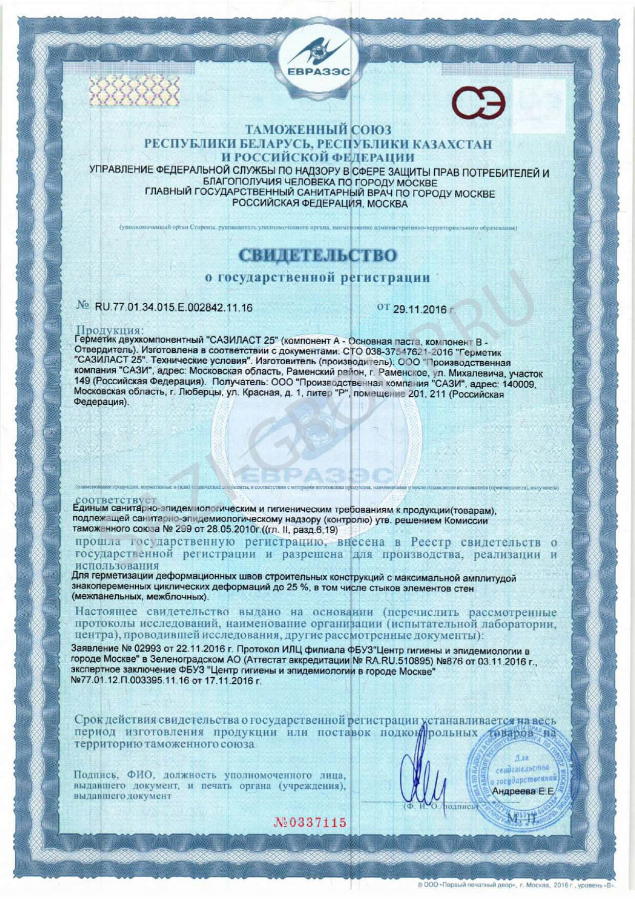 "Сазиласт 25" благодаря своим усиленным техническим характеристикам способствует значительному увеличению межремонтных сроков, при применении его на объектах со стандартными параметрами межпанельных стыков (ширина стыка 2 см, деформация не более 25%), обеспечив тем самым снижение издержек.