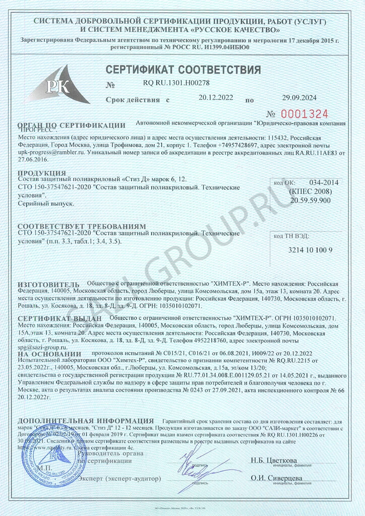 Гарантийный срок хранения 6 месяцев при температуре от 5 °С до 35 °С в ненарушенной заводской упаковке. При температуре ниже 5 °С состав транспортируют в отапливаемых вагонах, изотермических контейнерах или в авторефрижераторах.